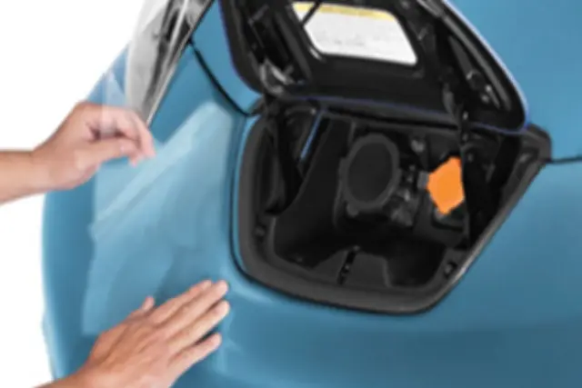 Keep your Nissan LEAF looking new with the clear charging port cover. It partially covers the front bumper and charging port. This accessory is not available in Hawaii for factory installation, but may be installed through your dealer. Please contact your dealer for details.